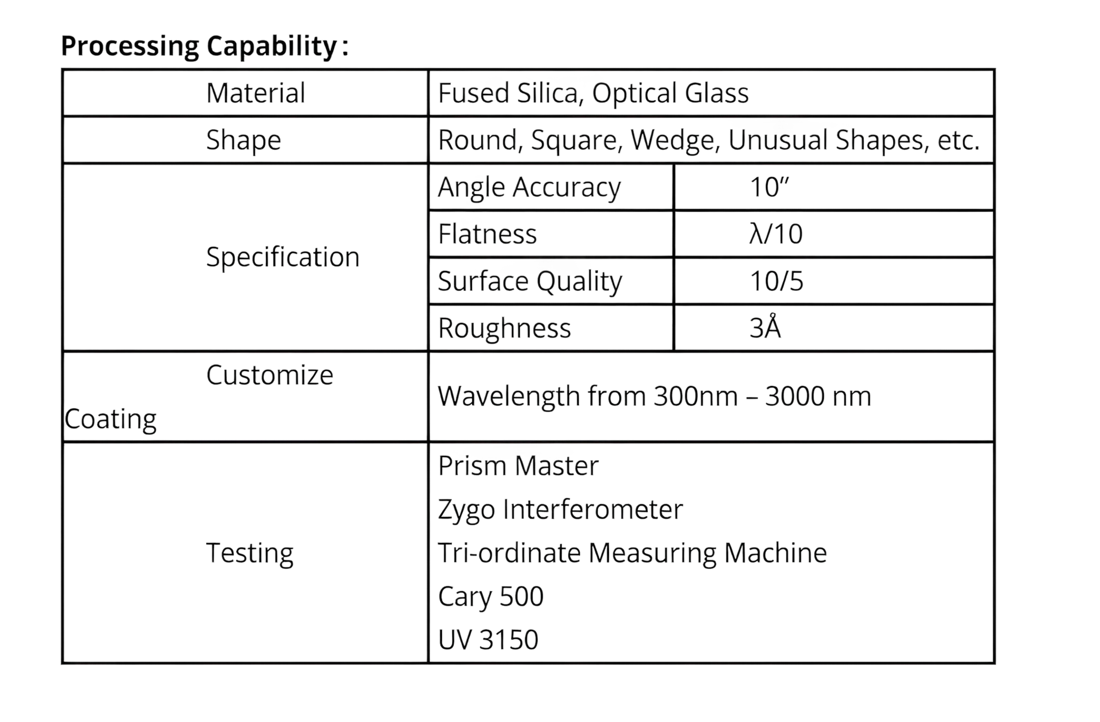 Wavelength Range: 300nm ~ 3000nmSubstrate: Optical Glass, Optical Fiber, Crystal, Sapphire